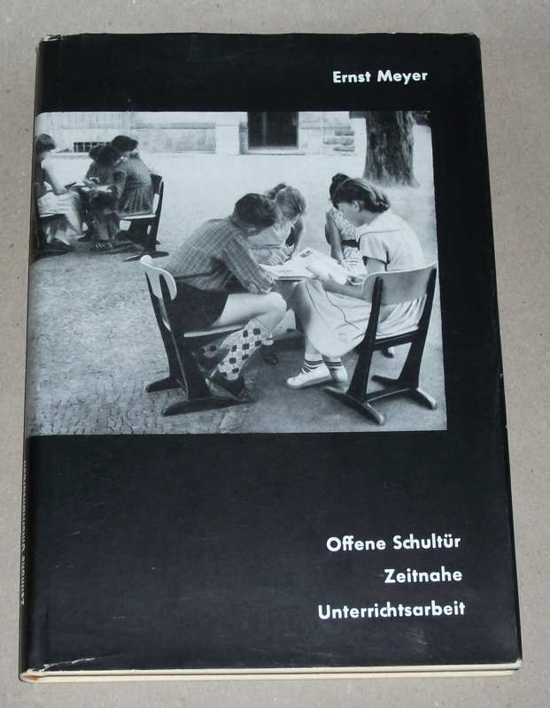 Meyer, Ernst: Offene Schultür. Zeitnahe Unterrichtsarbeit. Essen: Neue Deutsche Schule (1957) 22 cm, 236 S., mit 8 S. Bildtafeln, 1 Vierfarbtafel, 24 Fotos, 12 Reproduktionen, 18 Zeichnungen. Ln., SU. SU. mit Randläsuren. Schnitt gebräunt. Sonst gut erhalten.