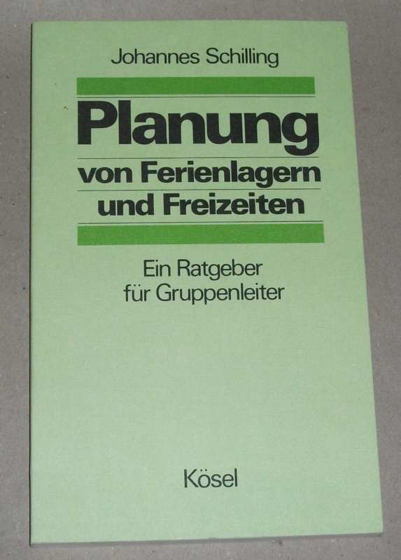 Schilling, Johannes: Planung von Ferienlagern und Freizeiten. Ein Ratgeber für Gruppenleiter. München: Kösel, 1981. 22 cm. 159 S., graph. Darst. Kart. Stempel a. V., sonst leichte Gebrauchsspuren.
