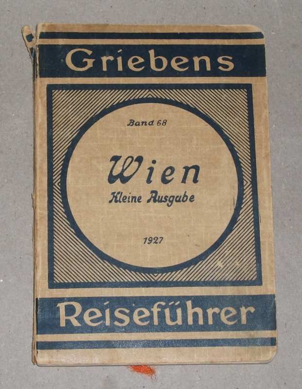 Griebens Reiseführer Band 68: Wien. Kleine Ausgabe. Auszug aus der 27. Aufl. der großen Ausgabe. Berlin: Grieben 1927 15,5 cm, 80 / 8 / XVII S. mit 3 Karten u. Werbe-Lesezeichen Firma Emil Busch, Rathenow, Prismen-Feldstecher. Kart. Rücken beschädigt, Einband u. Schnitt gebräunt / stockfleckig, Ecken bestoßen, Stadtplan eingerissen. Name a. T., Anstreichungen am Rand.