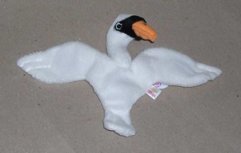 Magnettier Schwan. Plüsch, Spannweite ca. 19 cm. Mit 3 großen Magneten. Neuware.