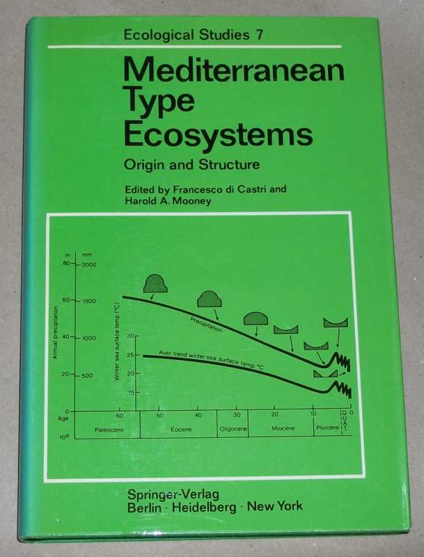 Di Castri, Francesco [Hrsg.]: Mediterranean type ecosystems. Origin and structure. Berlin, Heidelberg, New York: Springer, 1973. 25 cm. XII, 405 S., 88 Ill., graph. Darst. u. Kt. Ln., SU. SU. mit Randläsuren. Fleck im Vorsatz, sonst leichte Gebrauchsspuren. Ecological studies ; Vol. 7. Literaturangaben.