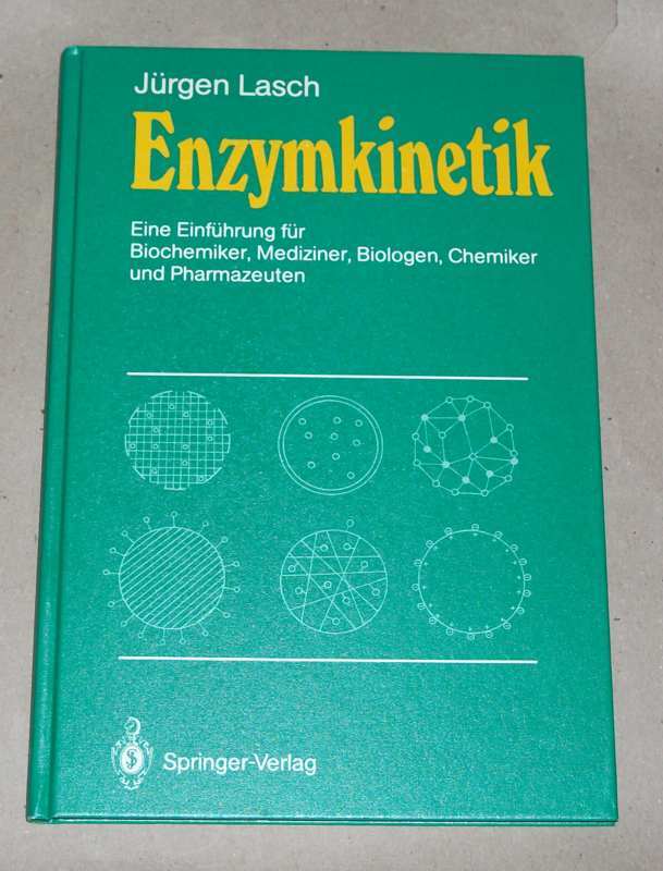 Lasch, Jürgen: Enzymkinetik. Eine Einführung für Biochemiker, Mediziner, Biologen, Chemiker u. Pharmazeuten. Berlin/Heidelberg/New York/London/Paris/Tokyo: Springer, 1987. 25 cm. 148 S., 62 graph. Darst. Pp. Leichte Gebrauchsspuren. Literaturverz. S. 141 – 143. – Mit 62 Abb. u. 18 Tab. – Lizenzausg. d. Fischer-Verl., Jena