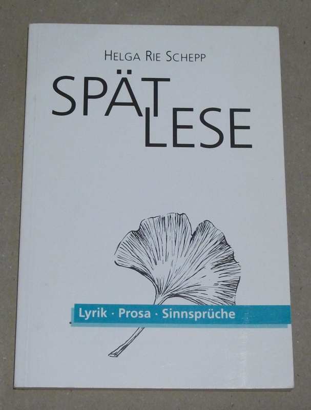 Schepp, Helga Rie: Spätlese. Lyrik Prosa Sinnsprüche. Kassel: Selbstverlag der Autorin (1992) 19,5 cm, 64 S., Kart. Leichte Gebrauchsspuren. Mit Widmung der Autorin im Vorsatz, signiert. Datiert Okt. 93.
