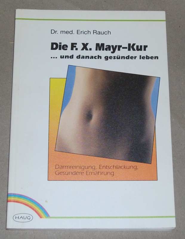 Rauch, Erich: Die F.-X.-Mayr-Kur … und danach gesünder leben. Darmreinigung, Entschlackung, gesündere Ernährung ; mit 6 Tabellen. 1. Nachdr., 11. – 30. Tsd. Heidelberg: Haug, 1992. 22 cm. 140 S., Ill. Kart. Leichte Gebrauchsspuren. Vorbeugen, heilen Reihe: Ernährung und Diätetik.
