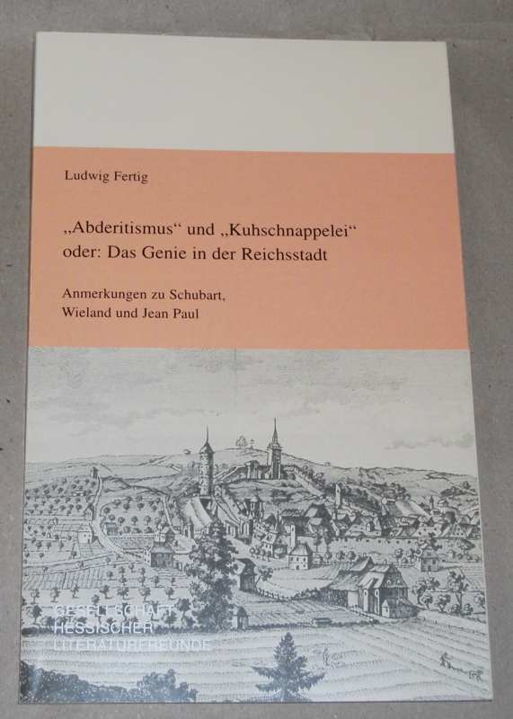 Fertig, Ludwig: „Abderitismus“ und „Kuhschnappelei“ oder: das Genie in der Reichsstadt. Anmerkungen zu Schubart, Wieland und Jean Paul. Darmstadt: Justus-von-Liebig-Verl., 2004. 23 cm, 183 gr.. 64 S. : Ill. engl. Broschur. Leichte Gebrauchsspuren. Gesellschaft Hessischer Literaturfreunde.