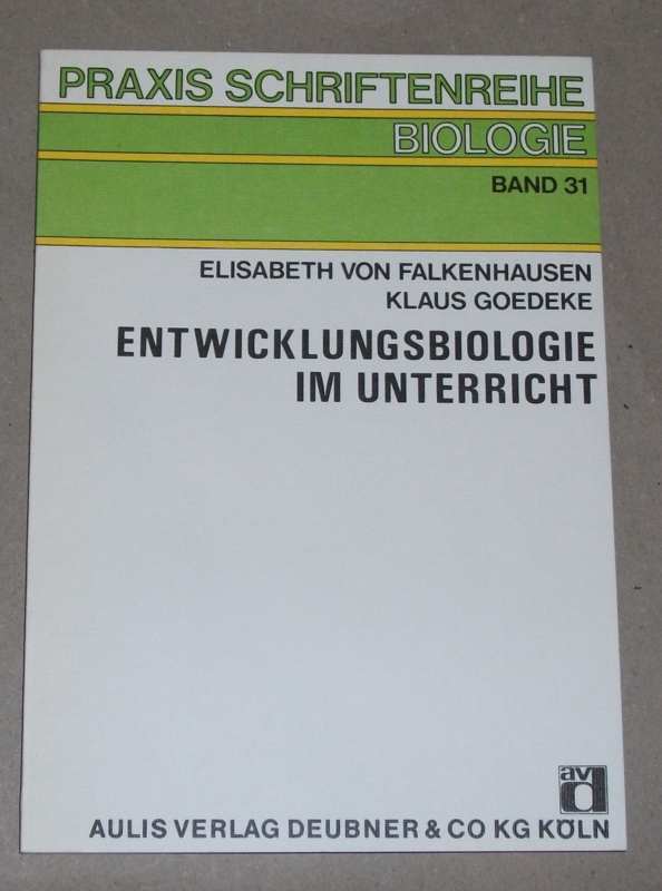 Falkenhausen, Elisabeth von; Goedeke, Klaus: Entwicklungsbiologie im Unterricht. Beitr. zur Gestaltung d. Biologieunterrichtes in d. Sekundarstufe II. Köln: Aulis-Verlag Deubner, 1983. 21 cm. 128 S., Ill. Kart. Leichte Gebrauchsspuren. Praxis-Schriftenreihe : Abt. Biologie ; Bd. 31. Literaturverz. S. 125 – 128