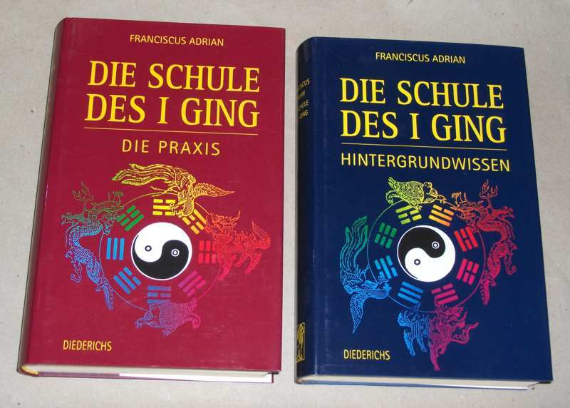 Adrian, Franciscus: Die Schule des I-ging. Die Praxis / Hintergrundwissen. Adrian, Franciscus: Die Schule des I-ging. 2 Bände. München: Diederichs, 1995 / 1994. 22 cm, 436 / 300 S., Ill. Ppe., SU. SU. etw. berieben, bei 1 Band mit Randeinriß. Schnitte gebräunt. Band Hintergrundwissen etwas schief gelesen. Sonst gut erhalten.