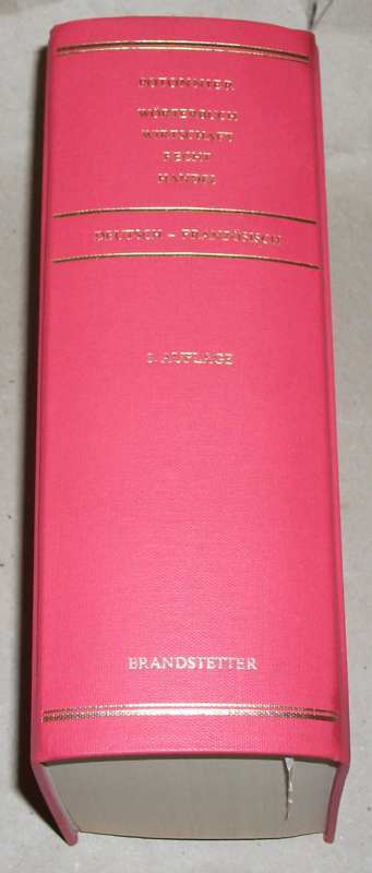 Potonnier, Georges Ed.: Wörterbuch für Wirtschaft, Recht und Handel. Band 1: Deutsch-Französisch. 3., völlig neu bearb. und erw. Aufl. Wiesbaden: Brandstetter, 1997. 21 cm. XVII, 1685 S. Ln. 1 S. produktionsbedingt falsch beschnitten, deshalb überstehend u. geknickt. Kein Textverlust. Schnitt gebräunt u. etw. angeschmutzt. Sonst gut erhalten.