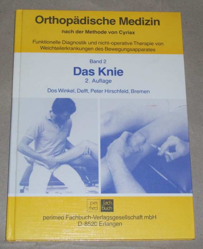Winkel, Dos u.a.: Das Knie. 2. Aufl. Erlangen: perimed-Fachbuch-Verl.-Ges., 1988. 25 cm. 110 S. Ill., graph. Darst. Pp. Besitzereintrag im Vorsatz, sonst leichte Gebrauchsspuren. Orthopädische Medizin nach der Methode von Cyriax, : funktionelle Diagnostik und nicht-operative Therapie von Weichteilerkrankungen des Bewegungsapparates / Peter Hirschfeld; Dos Winkel ; Bd. 2.