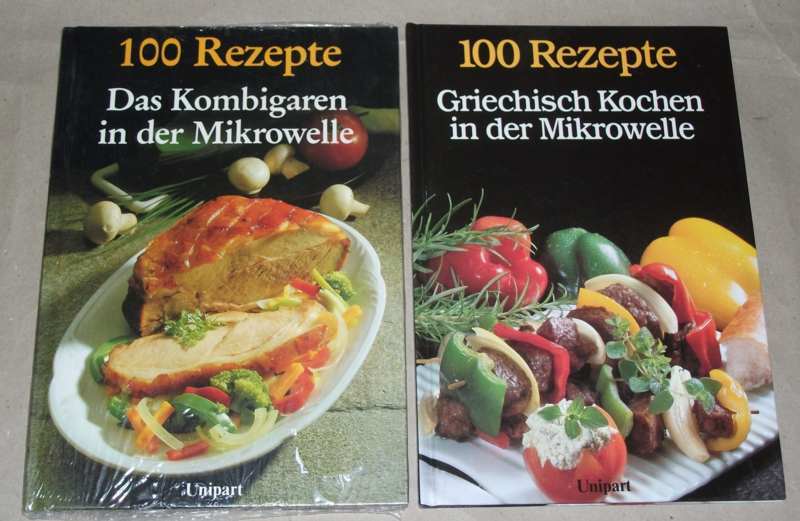 Born, Jutta / Edgar Wessel: 100 Rezepte Griechisch Kochen in der Mikrowelle / Das Kombigaren in der Mikrowelle. 2 Bände. Stuttgart: Unipart 1989 27 cm, je 64 S. mit Abb. Ppde. Leichte Gebrauchsspuren / Ungelesen.
