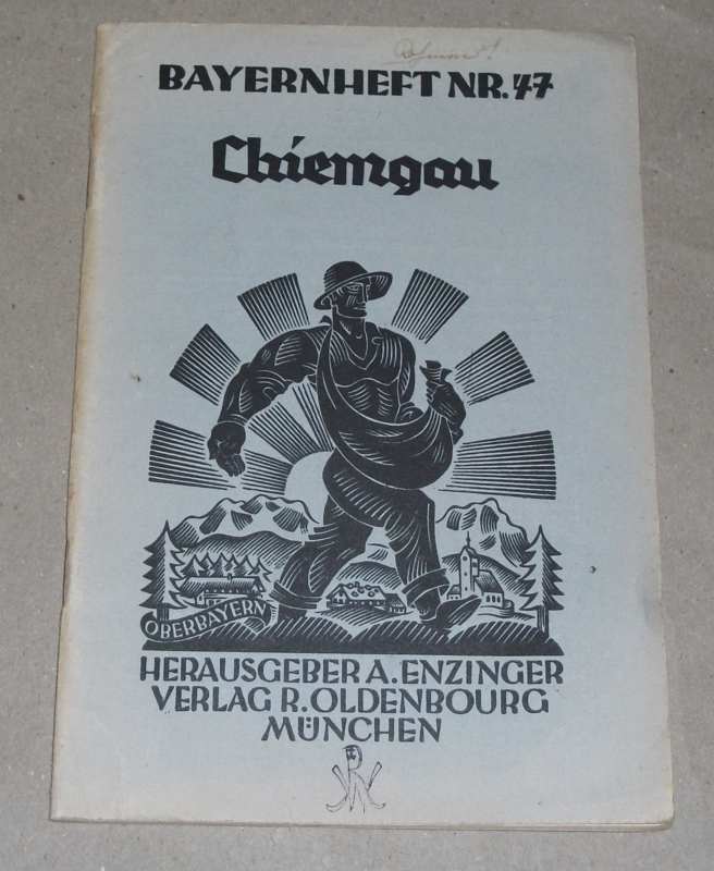 Enzinger, A. (Hrsg.): Chiemgau. München: R. Oldenbourg o.J. 20 cm, 56 S. mit Ill. Geheftet. Mit Gebrauchsspuren. Umschlag lichtrandig, berieben / bestoßen u. an der Rückseite etw. beschädigt. Schnitt gebräunt, Stempel a. S. 1. Bayernheft Nr. 47