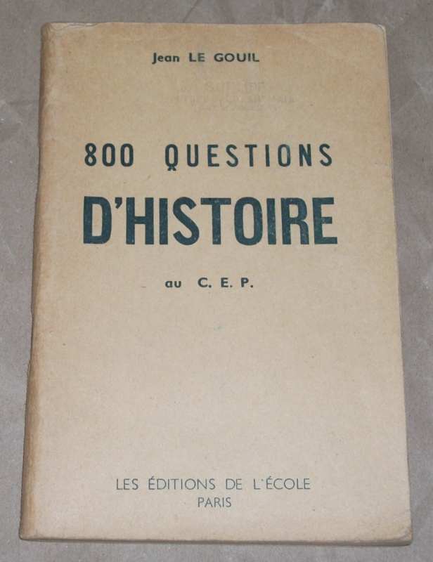 Gouil, Jean Le: 800 [Huit Cents] Questions D`Historie pour le Programme D`Études Primaires. Programm de 1949. Paris: Les Éditions de L`École 1956 17,5 cm, 144 S., Geheftet. Umschlag mit Gebrauchsspuren (gebräunt, etw. fleckig, Stempel, Randläsuren), Ecken bestoßen. Mit Anstreichungen / Anmerkungen.
