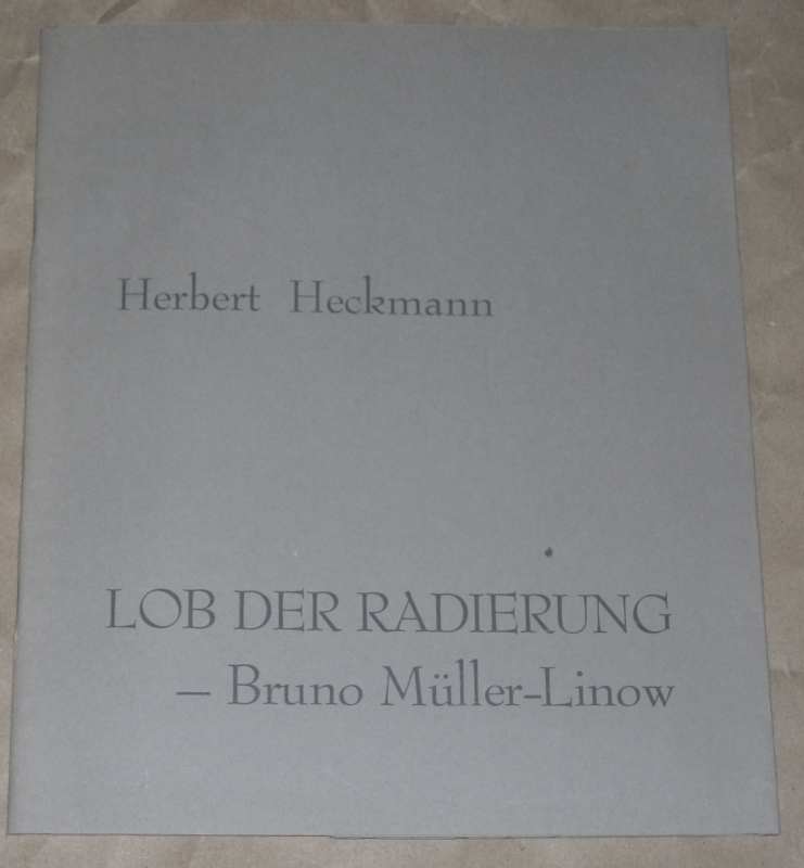 Heckmann, Herbert: Lob der Radierung. Bruno Müller-Linow, der 60 Jahre die Radiernadel führte, zum Achtzigsten. Bensheim: Buchhandlung u. Galerie Böhler 1989 26 cm, 14 S. mit Abb. Geheftet. Umschlag mit kl. Fleck, sonst leichte Gebrauchsspuren. Bensheimer Drucke 1.
