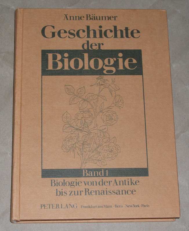 Bäumer, Änne: Geschichte der Biologie Band 1. Biologie von der Antike bis zur Renaissance. Frankfurt am Main/Bern/New York/Paris: Lang, 1991. 21,5 cm, X, 266 S. Ppd. Anstreichungen mit Marker im Text, sonst leichte Gebrauchsspuren.