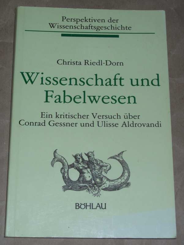 Riedl-Dorn, Christa: Wissenschaft und Fabelwesen. Ein kritischer Versuch über Conrad Gessner und Ulisse Aldrovandi. Wien/Köln: Böhlau, 1989. 23,5 cm, 183 S. Ill. Kart. Anstreichungen mit Marker im Text, Ecken etw. bestoßen, sonst gut erhalten. Perspektiven der Wissenschaftsgeschichte Bd. 6.