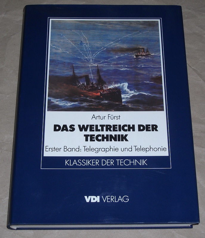 Fürst, Artur: Das Weltreich der Technik Erster Band: Telegraphie und Telephonie. Erstmaliger Reprint d. Ausg. Berlin, Ullstein, 1923. Düsseldorf: VDI-Verlag, 1985. 30 cm. XVI, 322 S., 584 Ill. (z.T. farb.), graph. Darst. u. Kt. Ln., SU.im Pappschuber. SU. am Rücken oben etw. beschädigt. Sonst leichte Gebrauchsspuren. In Fraktur