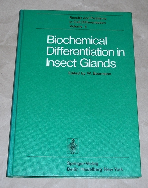 Beermann, Wolfgang [Hrsg.]; Baker, Brook K. [Mitarb.]: Biochemical differentiation in insect glands. Berlin, Heidelberg, New York: Springer, 1977. 25 cm. XII, 215 S., 110 Ill. u. graph. Darst. Pp. Schnitt etw. gebräunt / oben etw. fleckig. Sonst leichte Gebrauchsspuren. Results and problems in cell differentiation ; 8. Literaturangaben.