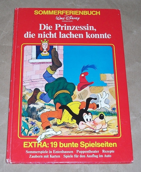 Disney, Walt: Die Prinzessin, die nicht lachen konnte. Extra: 19 bunte Spielseiten. Kopenhagen: Horizont / Egmont o.J. 24 cm, 66 S. mit Ill. Ppd. Ecken u. Kapitale bestoßen, Kanten etw. berieben. Sonst gut erhalten. Sommerferienbuch