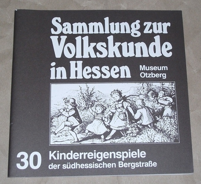 Schopp, Joseph: Kinderreigenspiele der südhessischen Bergstrasse. Bereich Bensheim, Lorsch, Heppenheim. Otzberg: Sammlung zur Volkskunde in Hessen, Museum Otzberg, 1989. 20 cm. 56 S., Ill., Noten. Geh. Gut erhalten. Sammlung zur Volkskunde in Hessen, Museum Otzberg ; 30.