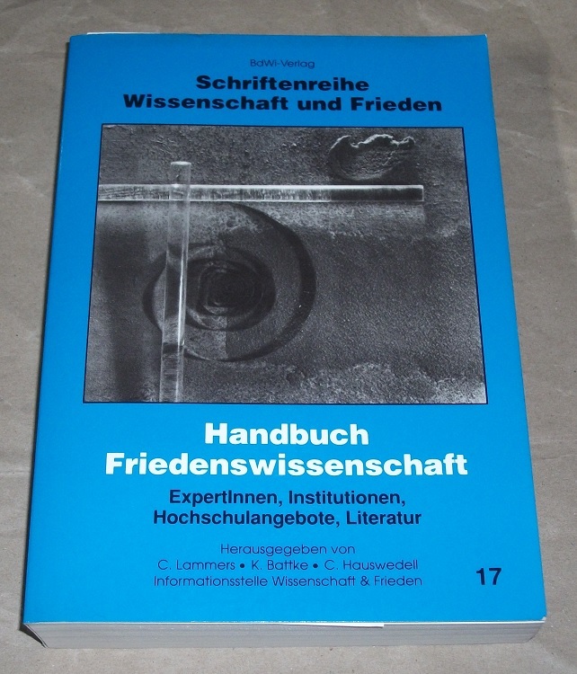 Lammers, Christiane [Hrsg.]: Handbuch Friedenswissenschaft. ExpertInnen, Institutionen, Hochschulangebote, Literatur. 3., überarb. und erw. Neuaufl. Marburg: BdWi-Verl., 1993. 21 cm. 457 S. Kart. Obere Ecken etw. bestoßen. Leichte Gebrauchsspuren. Schriftenreihe Wissenschaft und Frieden ; 17.
