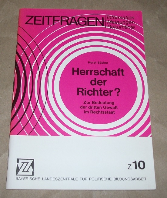Säcker,Horst: Herrschaft der Richter? Zur Bedeutung der dritten Gewalt im Rechtsstaat. 1. Aufl. München: Bayerische Landeszentrale für politische Bildungsarbeit 1978 23,5 cm, 20 S. Geheftet. Leichte Gebrauchsspuren. Zeitfragen Z10