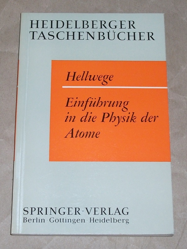 Hellwege, Karl-Heinz: Einführung in die Physik der Atome. 2., erw. Aufl. Berlin/Göttingen/Heidelberg: Springer, 1964. 8. VIII, 162 S., Mit 80 Abb. TB. Leichte Gebrauchsspuren. Schnitt gebräunt. Heidelberger Taschenbücher. 1. Aufl. erschien in d. Wolfenbütteler Verl.-Anst., Wolfenbüttel u. Hannover
