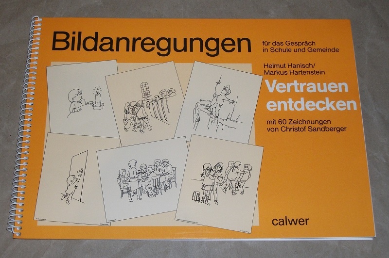 Hanisch, Helmut u. Markus Hartenstein: Vertrauen entdecken. Bildanregungen für das Gespräch in Schule und Gemeinde. Mit 60 Zeichnungen von Christof Sandberger. Stuttgart: Calwer Verl., 1991. 20,5 x 30 cm, querformat. 86 S. zahlr. Ill. Spiralbindung. Leichte Gebrauchsspuren.