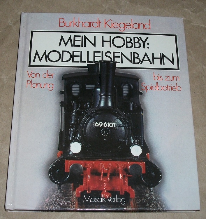 Kiegeland, Burkhardt: Mein Hobby: Modelleisenbahn. Von der Planung bis zum Spielbetrieb. München: Mosaik-Verlag, 1981. 20 cm. 192 S., Ill. (z.T. farb.), graph. Darst. Pp. Kapitale u. Einbandecken etw. bestoßen. Leichte Gebrauchsspuren. Literaturverz. S. 186 – 188