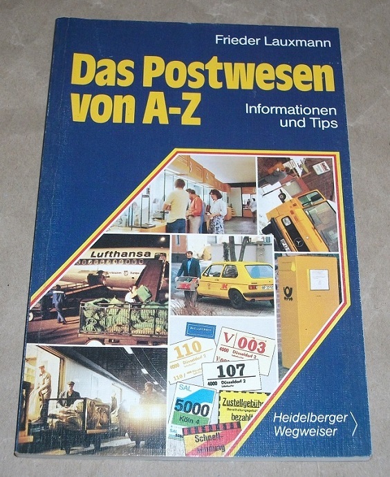 Lauxmann, Frieder: Das Postwesen von A – Z. Informationen u. Tips. Heidelberg: v. Decker; Heidelberg : Müller, 1985. 19 cm. 128 S., Ill., graph. Darst. TB. Kanten leicht berieben. Schnitt etw. gebräunt u. angeschmutzt / fleckig. Sonst gut erhalten. Heidelberger Wegweiser.