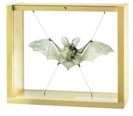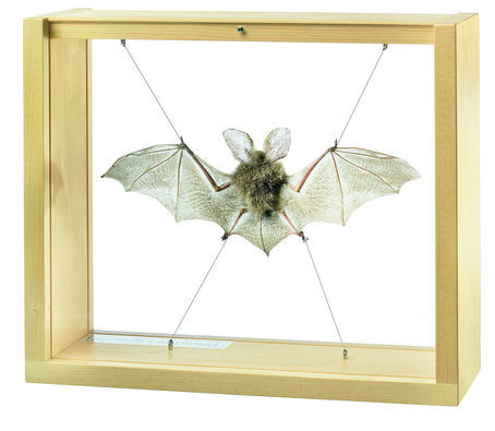 SOMSO: Braunes Langohr, Weibchen ( Plecotus auritus). Natürliche Größe (Flügelspannweite 22 cm ) Spezialkunststoff in Schaukasten, unzerlegbar. Höhe 26 cm. Neuware. Preis und Lieferzeit auf Anfrage.