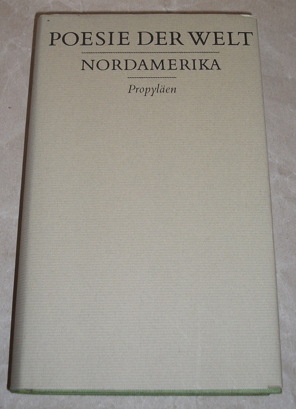 Schmiele, Walter [Hrsg.]: Poesie der Welt : Nordamerika. Signiert. Berlin: Propyläen-Verl., 1984. 20,5 cm, 420 S. Ln., SU. SU. mit leichten Randläsuren. Oberer Schnitt angestaubt. Leichte Gebrauchsspuren. Edition Stichnote. Hinter dem Titelblatt mit Widmung des Herausgebers. Signiert, datiert 20 – XI – 84.