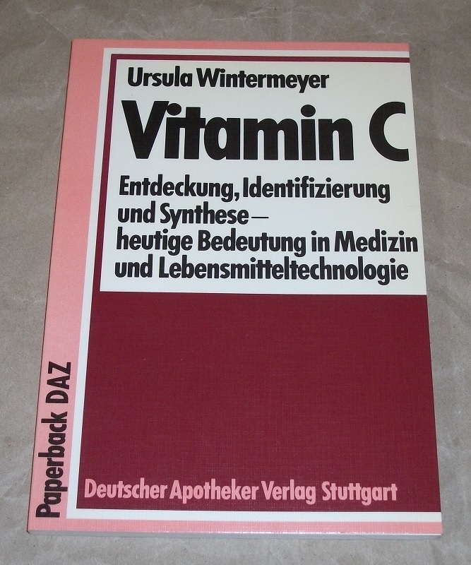 Wintermeyer, Ursula: Vitamin C. Entdeckung, Identifizierung u. Synthese – heutige Bedeutung in Medizin u. Lebensmitteltechnologie. Stuttgart: Deutscher Apotheker-Verlag, 1981. 24 cm. 134 S., graph. Darst. Kart. Leichte Gebrauchsspuren. Paperback DAZ. Literaturverz. S. 122 – 130