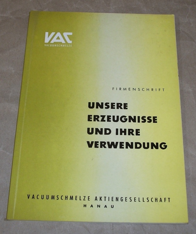 Vacuumschmelze AG Hanau (Hrsg.): Unsere Erzeugnisse und ihre Verwendung. Firmens