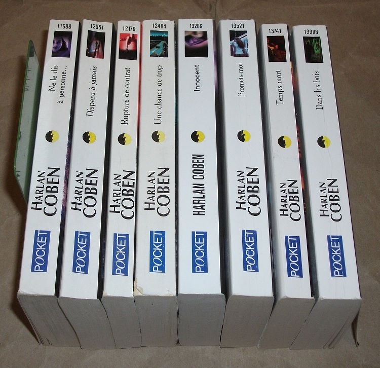Coben, Harlan: Konvolut von 8 Bänden (Text Französisch). Enthält: Ne le dis à personne… / Disparu à jamais / Rupture de contrat / Une chance de trop / Innocent / Promets-moi / Temps mort / Dans les bois. 8 Bände. Paris: Pocket 2002-2008 18 cm, TB. Rücken mit Knickspuren vom lesen, schief gelesen, Ecken etw. bestoßen. Pocket 11688 / 12051 / 12176 / 12484 / 13286 / 13521 / 13741 / 13988.