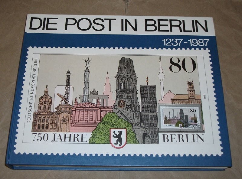 Deutsch, Karl-Heinz [Mitarb.]; Roth, Kurt [Hrsg.]: Die Post in Berlin. 1237 – 1987. Berlin: Bezirksgruppe Berlin d. Ges. für Dt. Postgeschichte, 1987. 25 x 30 cm + Kt.-Beil. ([3] Bl.). 412 S., überwiegend Ill. (z.T. farb.), Kt. Pp. in durchsichtiger Schutzhülle. Ecken etw. bestoßen. Schutzhülle berieben. Sonst leichte Gebrauchsspuren. Literaturverz. S. 388 – 405