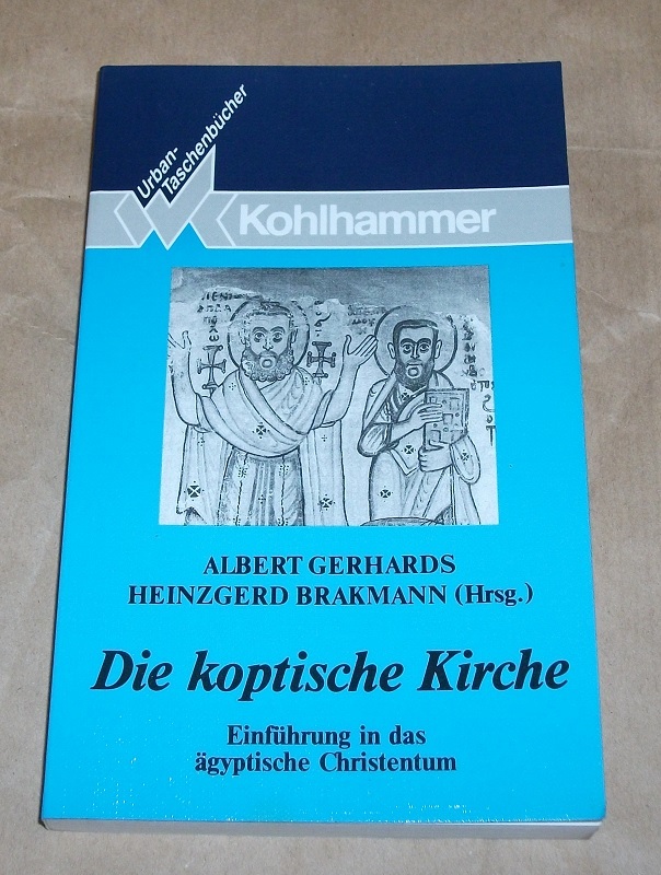Gerhards, Albert u. Heinzgerd Brakmann (Hrsg.): Die koptische Kirche. Einführung in das ägyptische Christentum. Stuttgart: Kohlhammer, 1994. 18,5 cm, 240 S. Ill., Kt. TB. Schnitt oben braunfleckig, Schnitt etw. angeschmutzt. Sonst leichte Gebrauchsspuren. Urban-Taschenbücher Bd. 451.