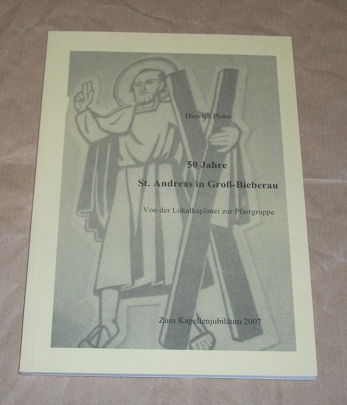 Plehn, Dietrich: 50 Jahre St. Andreas in Groß-Bieberau. Von der Lokalkaplanei zur Pfarrgruppe. Zum Kapellenjubiläum. Groß-Bieberau: Katholisches Pfarramt 2007 21 cm, 72 S. mit Abb. Kart. Leichte Gebrauchsspuren.