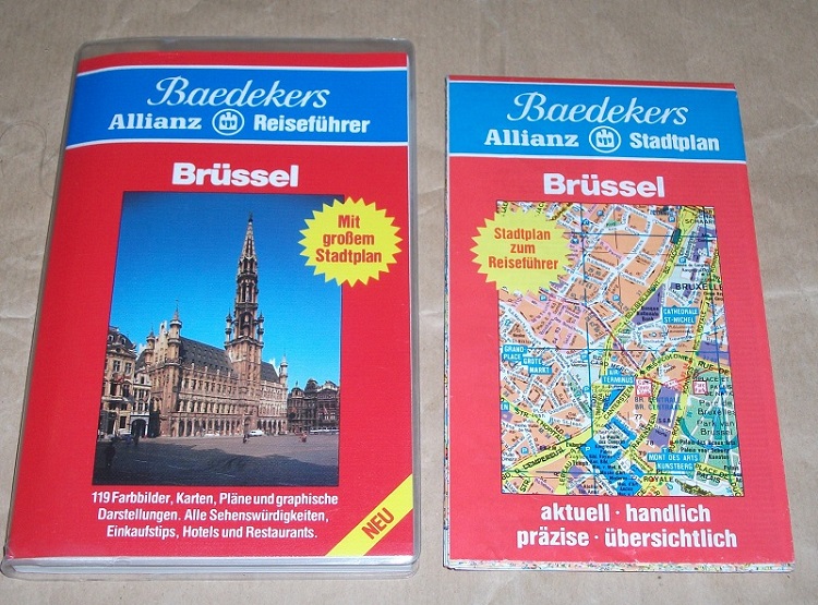 Baedeker: Brüssel. Allianz Reiseführer. Mit großem Stadtplan. 119 farbbilder, Karten, Pläne und graphische Darstellungen. Alle Sehenswürdigkeiten, Einkaufstips, Hotels und Restaurants. 4. Aufl. Ostfildern: Karl Baedeker 1991 19 cm, 195 S. Kart. in Hülle. Unteres Kapital u. Ecke etw. bestoßen, sonst leichte Gebrauchsspuren. Umschlag des Stadtplans mit Gebrauchsspuren.