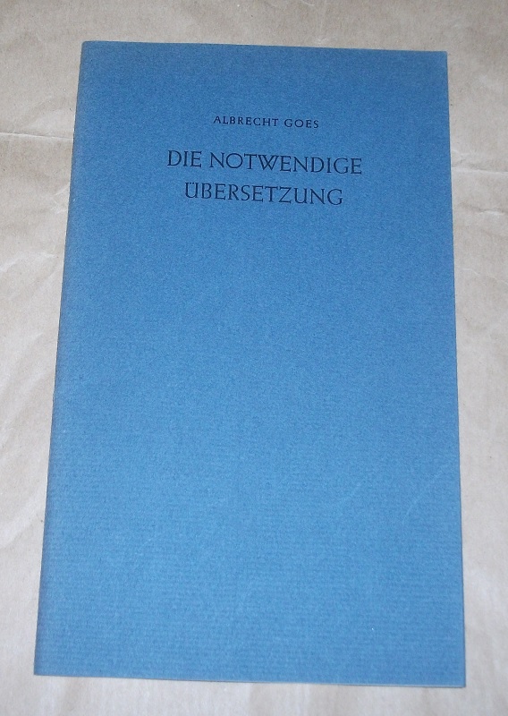 Goes, Albrecht: Die notwendige Übersetzung. Rede zum Volkstrauertag in Darmstadt, 17. Nov. 1962. Hrsg. von Wilhelm E. Zinsel, Neutsch i. ODW. Darmstadt: Eduard Roether 1963 22 cm, 7 Bl. Geheftet. Einband etw. lichtrandig. Leichte Gebrauchsspuren.