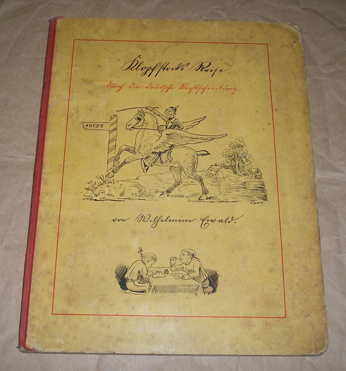 Ewald, Wilhelmine: Klopstocks Reise durch die deutsche Rechtschreibung. Berlin: Ernst Litsatz Erben (1914) 31 cm, 39 S. mit Ill., Schrift Sütterlin. HLn. Deutliche Gebrauchsspuren. Einband bestoßen / verkratzt, angeschmutzt / fleckig. Innen stärker braunfleckig, Seitenecken z.T. etw. geknickt.