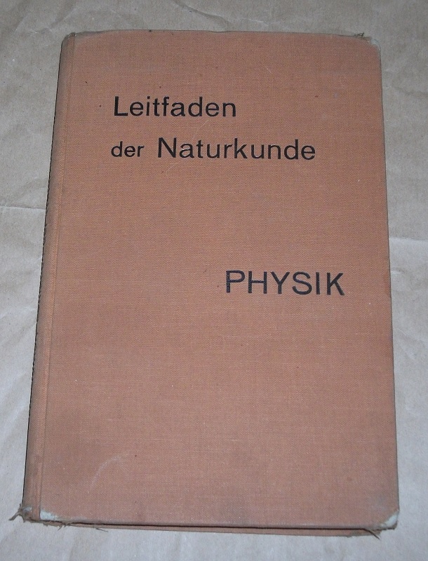 Gubler, Theodor: Leitfaden für den Unterricht in der Naturkunde, 3. Teil: Physik. Obligatorisches Lehrmittel für die Sekundarschulen des Kantons Zürich. 14. Aufl. Zürich: Verlag der Erziehungsdirektion 1936 22 cm, 188 S. Ill. Ln. Deutliche Gebrauchsspuren. Ehem. Bibliotheks-Exemplar mit eingeklebtem Zettel der Schulverwaltung im Vorsatz. Ecken und Kapitale bestoßen, Schnitt gebräunt u. fleckig, Seitenecken bestoßen / etw. geknickt. Eintragungen / Skizzen im hinteren Vorsatz.