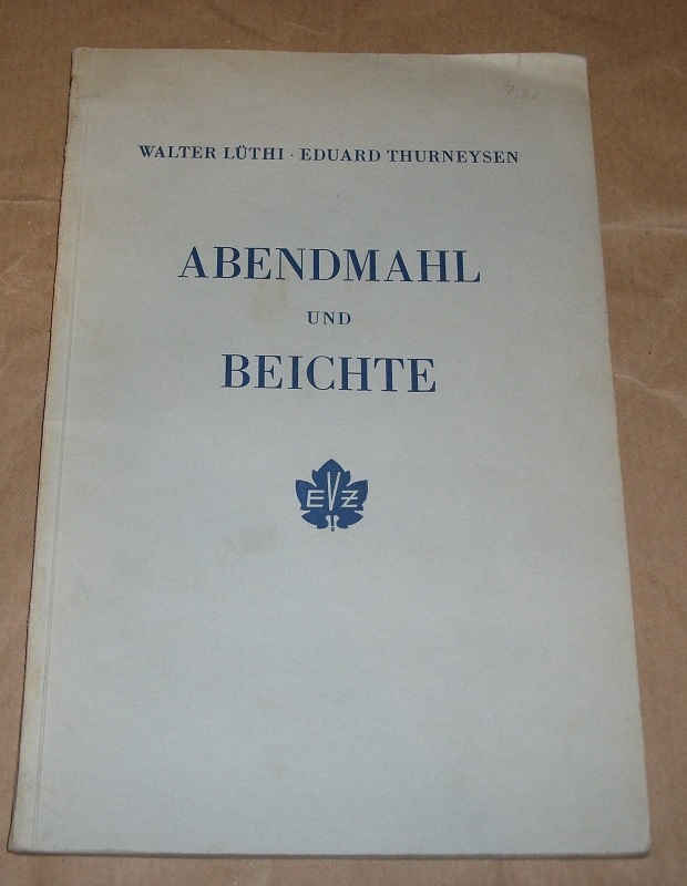 Lüthi, Walter u. Eduard Thurneysen: Abendmahl und Beichte. Ein Wort an unsere Gemeinden. Zollikon Zürich: Evangelischer Verlag 1944 22,5 cm, 58 S. Broschur. Einband mit Gebrauchsspuren u. etw. fleckig / angeschmutzt, Ecken bestoßen, Schnitt gebräunt. Name a. T. Rücken mit handschriftlicher Beschriftung.