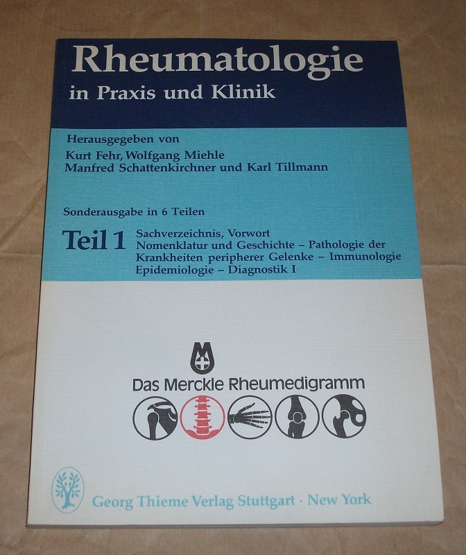 Fehr, Kurt / Miehle, Wolfgang (Hrsg.): Rheumatologie in Praxis und Klinik. Teil 1. Sonderausgabe in 6 Teilen. Hier nur Teil 1! Unveränderter Nachdruck der 1. Aufl. Thieme Vlg. 1989 Blaubeuren: Merckle 1989 27 cm, getr. Zählung Ill., graph. Darst. Kart. Leichte Gebrauchsspuren.