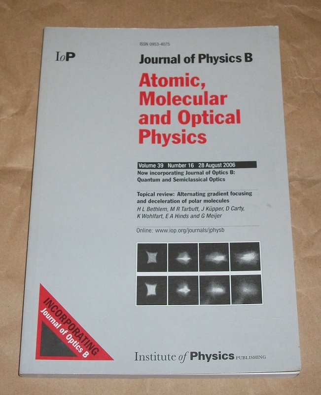Journal of Physics B: Volume 39, Number 16, 28. August 2006. Atomic, Molecular and Optical Physics. Topical rewiew: Alternating gradient focusing and deceleration of polar molecules. Bristol: Institute of Physics 2006 24,5 cm, L305-311 / R263 -291 / S. 3147 – 3429. With Fig. u. Tab. Kart. Ecken etw. bestoßen, sonst gut erhalten. ISSN 0953-4075.