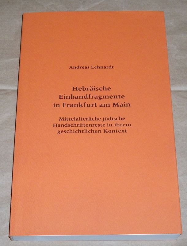 Lehnardt, Andreas: Hebräische Einbandfragmente in Frankfurt am Main. mittelalterliche jüdische Handschriftenreste in ihrem geschichtlichen Kontext. Frankfurt, M.: Klostermann, 2011. 21 cm. 191 S. Ill. Kart. Leichte Gebrauchsspuren. Wirkt Ungelesen. Frankfurter Bibliotheksschriften, Bd. 16.