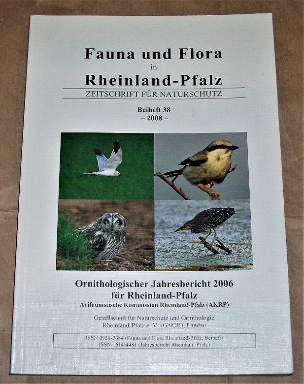 GNOR (Hrsg.): Ornithologischer Jahresbericht 2006 für Rheinland-Pfalz. Landau: GNOR, 2008. 24 cm, 253 S. Ill., graph. Darst., Kt. Kart. Einbandkante / Ecken etw. bestoßen, sonst leichte Gebrauchsspuren. Fauna und Flora in Rheinland-Pfalz; Beiheft, 38.