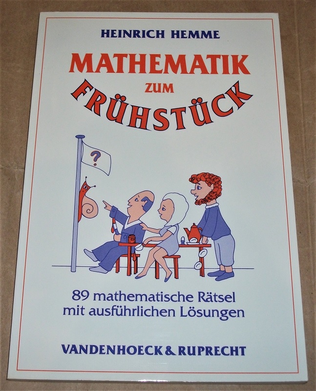 Hemme, Heinrich: Mathematik zum Frühstück. 89 mathematische Rätsel mit ausführlichen Lösungen. Göttingen: Vandenhoeck u. Ruprecht, 1990. 23 cm. 124 S. Ill. Kart. Leichte Gebrauchsspuren. Oberer Schnitt etw. fleckig.