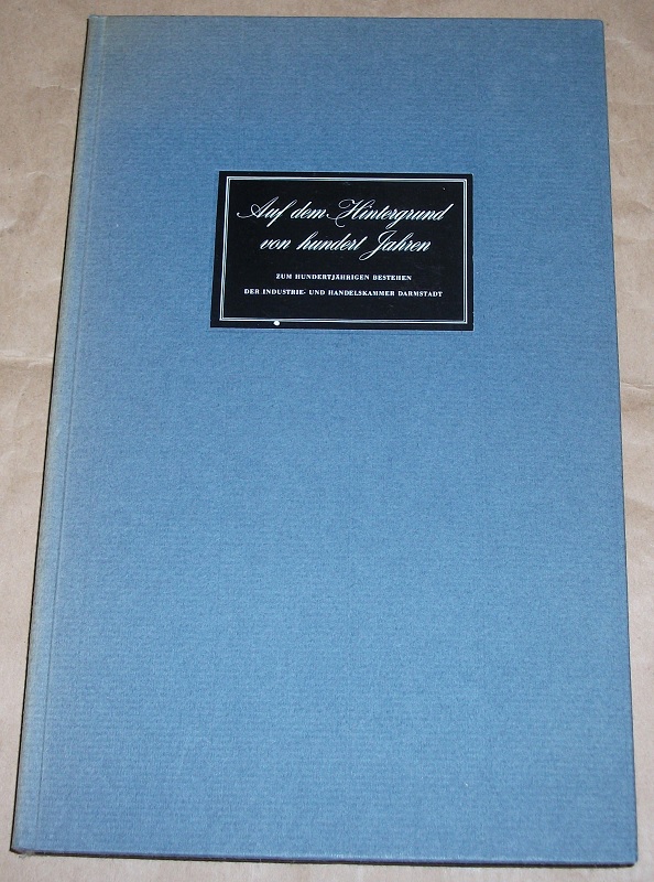 Industrie- und Handelskammer (Darmstadt): Auf dem Hintergrund von hundert Jahren. Zum hundertjährigen Bestehen der Industrie- und Handelskammer Darmstadt. Darmstadt: Roether, 1962. 24,5 cm, 114 S. mit montierten Abb. Ppd. Einband (vor allem am Rücken) lichtrandig, Schnitt gebräunt. Gut erhalten.