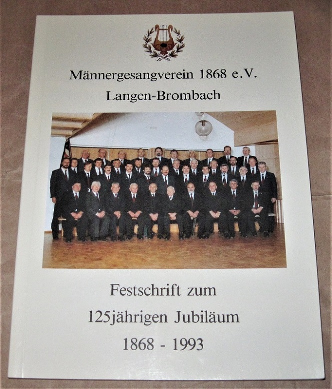 Männergesangverein 1868 e.V. Langen-Brombach (Hrsg.): Festschrift zum 125jährigen Jubiläum 1868-1993. Langen-Brombach: 1993 20,5 cm, 128 S. mit Abb. u. Werbeanzeigen. Kart. Leichte Gebrauchsspuren.