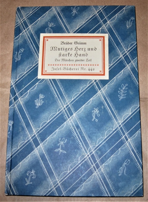 Grimm, Jacob: Mutiges Herz und starke Hand. Der Märchen zweiter Teil. 11.-15. tsd. Leipzig: Insel Verlag, 1941. 18 cm, 95 S. Ppd. Kapitale etw. berieben, Schnitt gebräunt. Gut erhalten. Die Grimmschen Märchen / Brüder Grimm; Insel-Bücherei, 442.